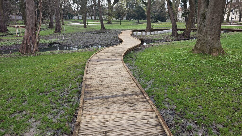 Súčasťou projektu bola aj modernizácia infraštruktúry. V parku pribudli mlatové chodníky, drevený chodník v mokraďovej časti, nové osvetlenie a kamerový systém. Vzniklo aj lapidárium, ktoré dopĺňa historický charakter územia. Sadovnícke úpravy zahŕňali výsev trávnikov, výsadbu trvaliek a doplnenie ekostabilizačných prvkov, ktoré pomáhajú zlepšiť vodný režim a mikroklímu územia.