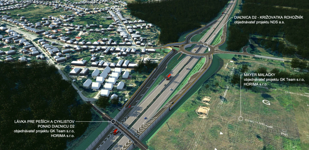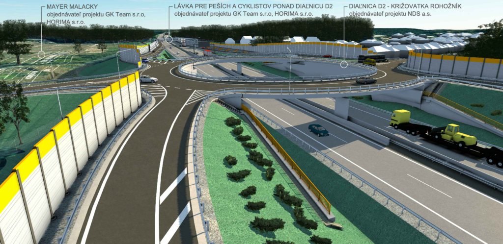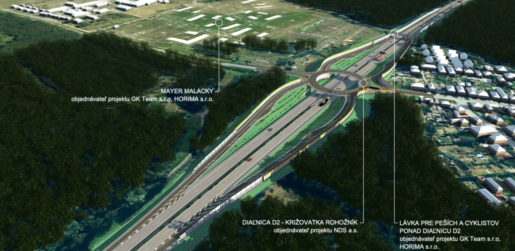 Národná diaľničná spoločnosť podpísala zmluvu na projekt D2 križovatka Rohožník, ktorý má doplniť nové napojenie cesty II/143 na diaľnicu D2 pri Malackách. Zhotoviteľom je združenie EUROVIA SK, a.s. a SMS a.s. Zmluva je uzatvorená vo forme FIDIC Yellow Book, teda nielen na samotnú výstavbu, ale aj na vypracovanie ďalších stupňov projektovej dokumentácie a zabezpečenie inžinierskej činnosti až po právoplatné kolaudačné rozhodnutie. Akceptovaná zmluvná hodnota predstavuje 16,82 milióna eur bez DPH, teda 20,69 milióna eur s DPH.